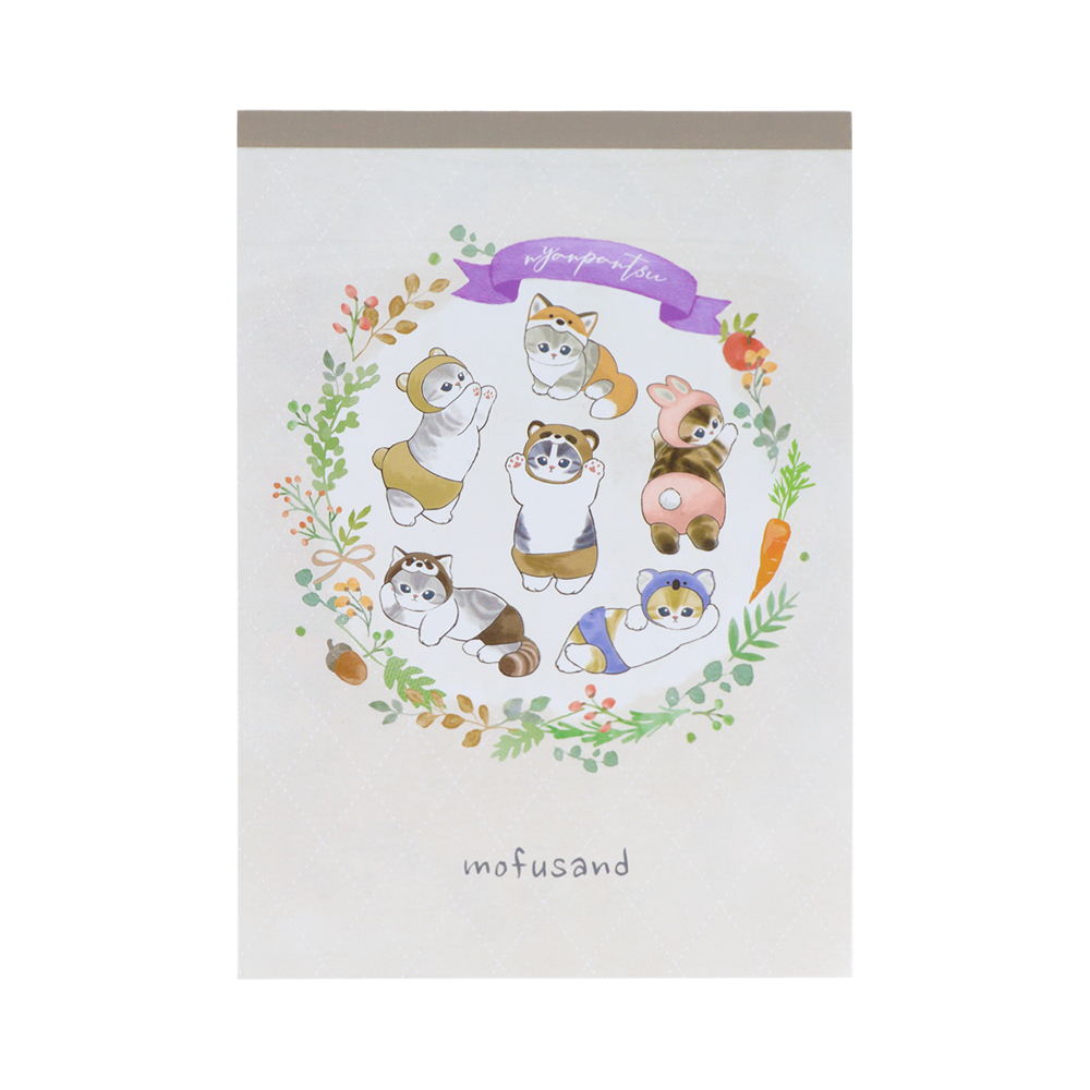 色々などうぶつ姿のネコちゃん達が集まる『にゃんぱんつ!』柄のメモ。