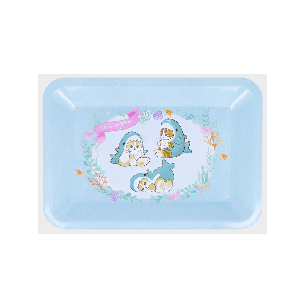サメの姿をしたネコちゃんたちと、海のモチーフを組み合せたデザインがおしゃれです。