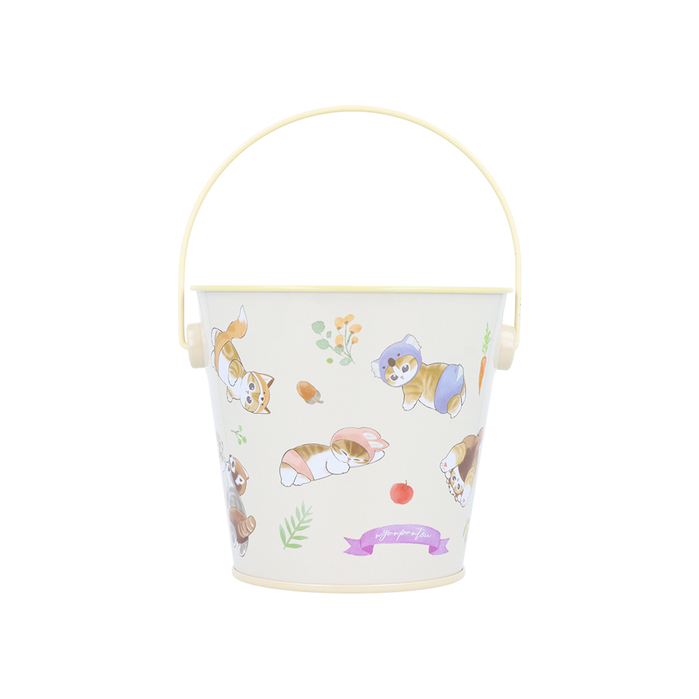 うさぎやきつねなどの姿をしたネコちゃん達を散りばめた、『にゃんぱんつ!』柄のブリキペンスタンド。