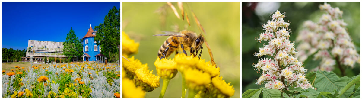 ムーミンバレーパークの豊かな草花での「ムーミンバレーパーク ミツバチプロジェクト」を推進することを通じて、持続可能な社会の実現へとつながります。