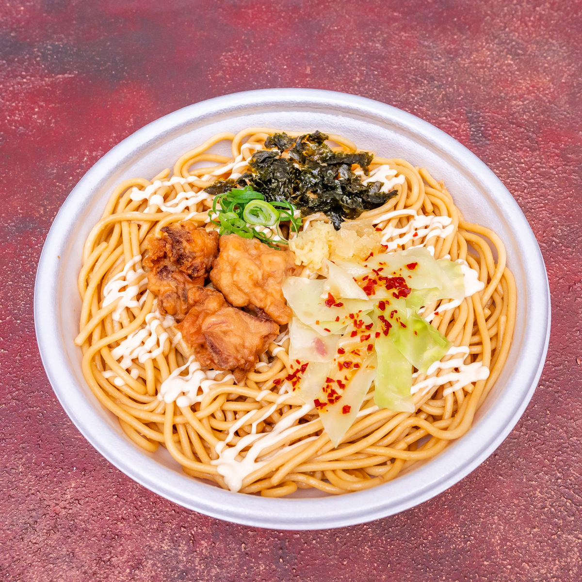 さらに鶏のから揚げや刻みにんにく、マヨソースなどのトッピングは、背徳感ある組み合わせ。