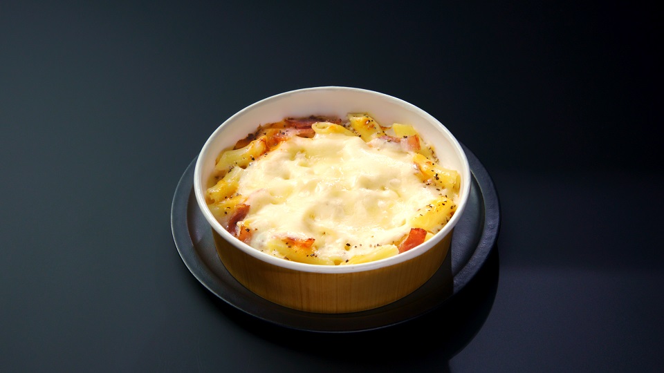 4種のチーズ(ゴーダ・チェダー・モッツァレラ、パルメザン)をトッピングした、背徳感たっぷりのチーズグラタン。