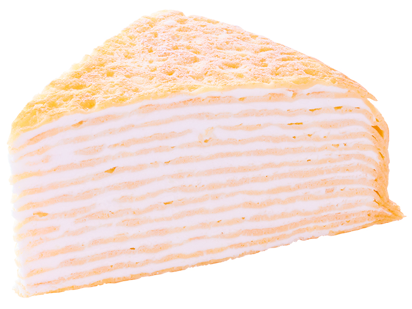 ミルキークリームとクレープ生地を一緒に頬張ると、重なる層の舌触りと、クレープ生地が次第にほどけてクリームと合わさるなめらかな食感を楽しめる味わい。