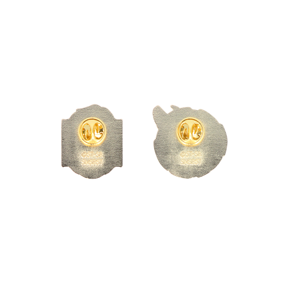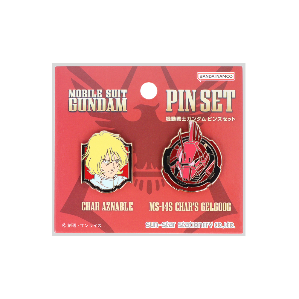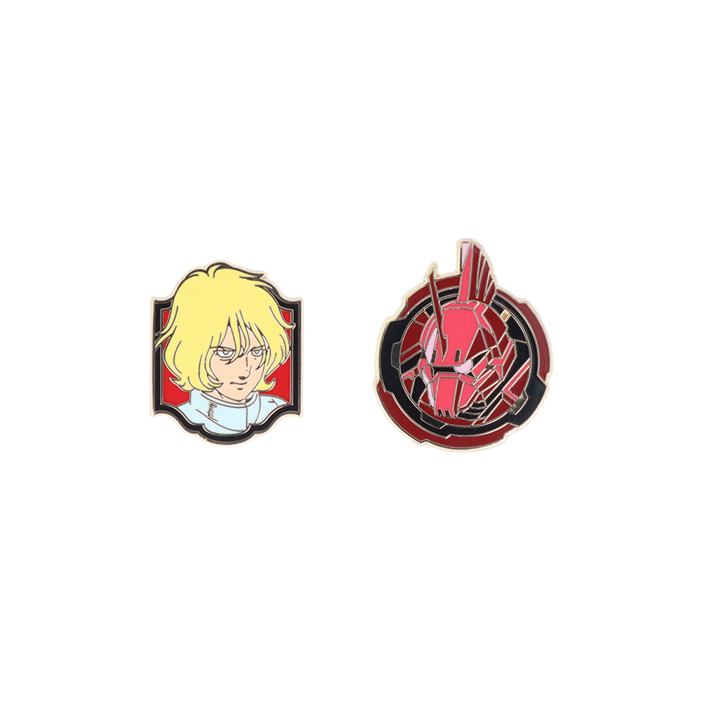 「シャア・アズナブル」と「シャア専用ゲルググ」がセットになったピンバッジ。