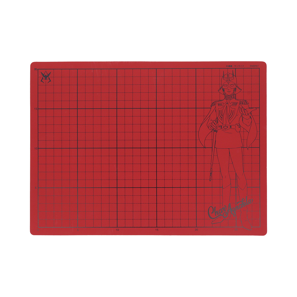 赤いカッターマットに、黒でマス目と「シャア・アズナブル」の姿をあしらったデザイン。
