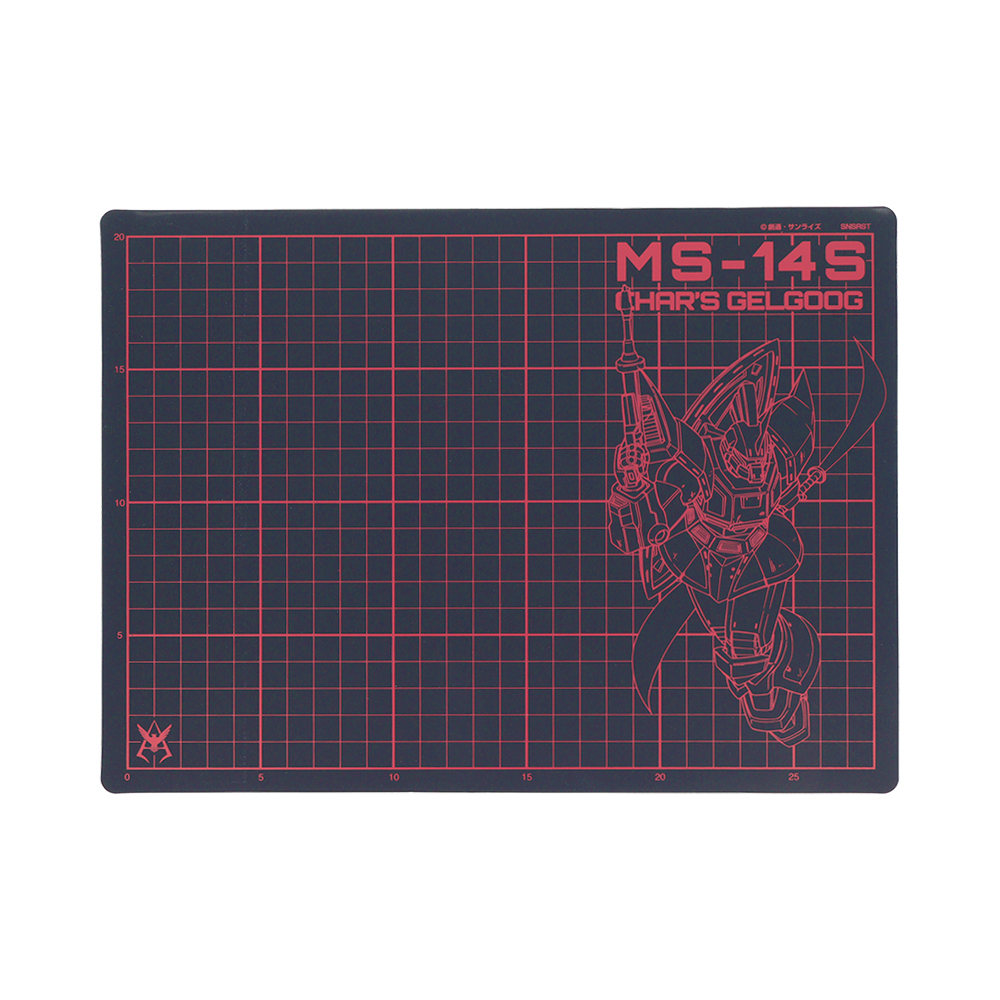 黒のカッターマットに、赤で「シャア専用ゲルググ」を描いたデザイン。