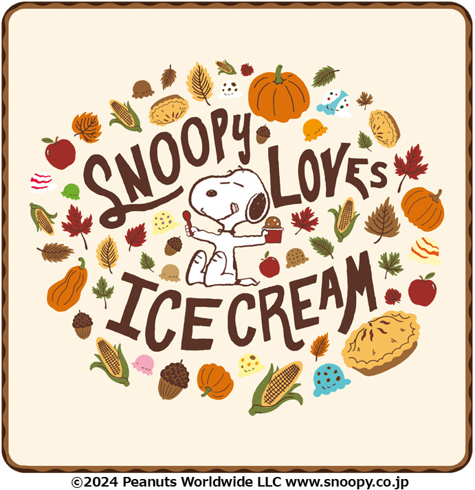「スヌーピー」がたくさんの秋の食材やアイスに囲まれた「スヌーピー」デザイン。