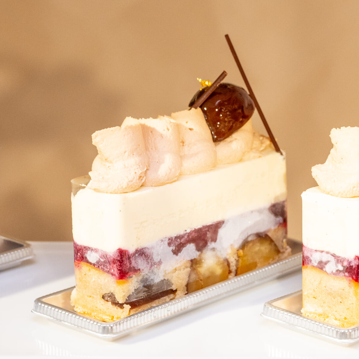 ゴロゴロと入った栗の食感と、カシスやフランボワーズの甘酸っぱいソースとの絶妙なハーモニーが、至福のひとときを演出します。