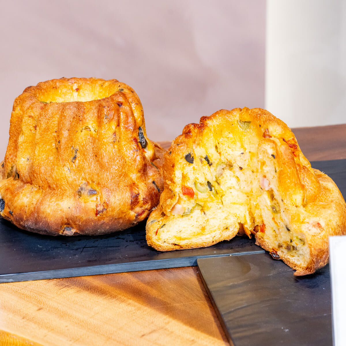 隠し味にトリュフペーストを練り込み、風味豊かに仕上げられた、南仏プロヴァンスの風景を思い起こさせる、贅沢なクグロフ。