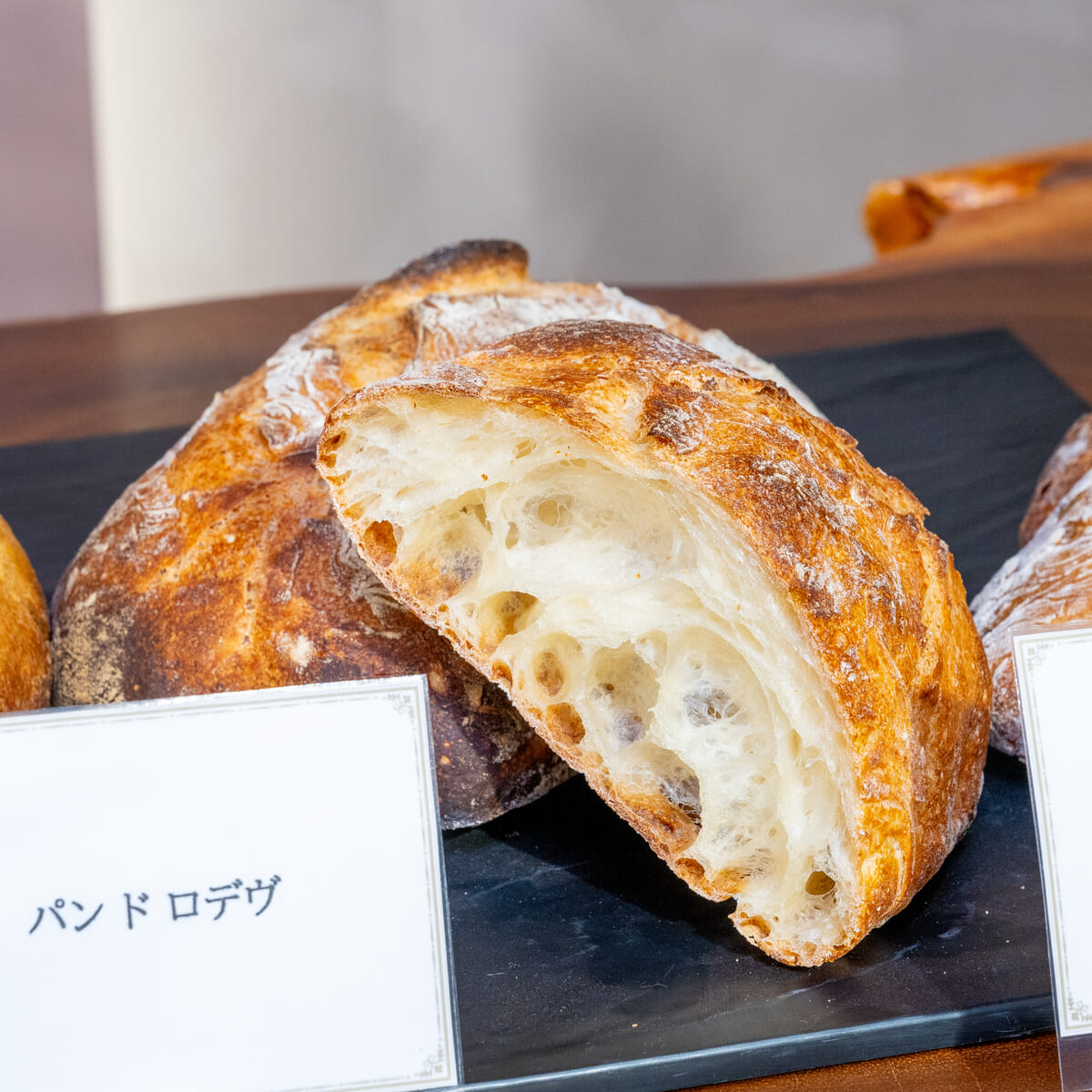 森広氏が丁寧に仕上げるクロワッサン生地を使用した「パンスイス」や、ルヴァン(発酵種)を使用して焼き上げた、気泡が大きくふんわりとした高加水パン「パンドロデヴ」など、こだわりのベーカリーが楽しめます。
