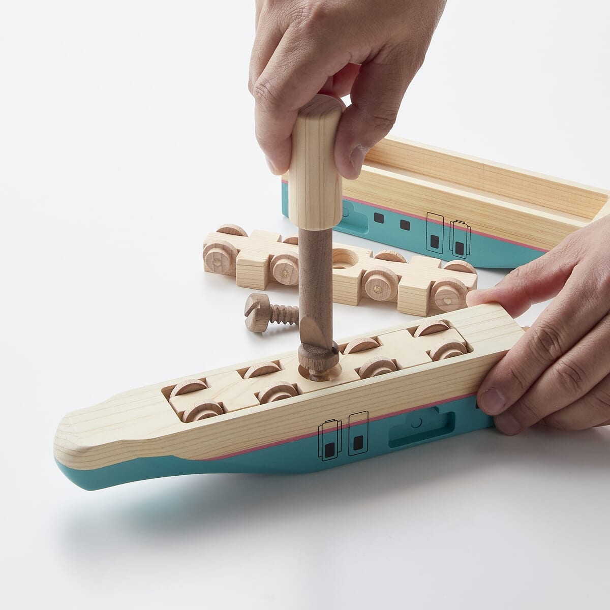 組み立てながら学べて大人も心躍る、新幹線はやぶさの木製おもちゃ。