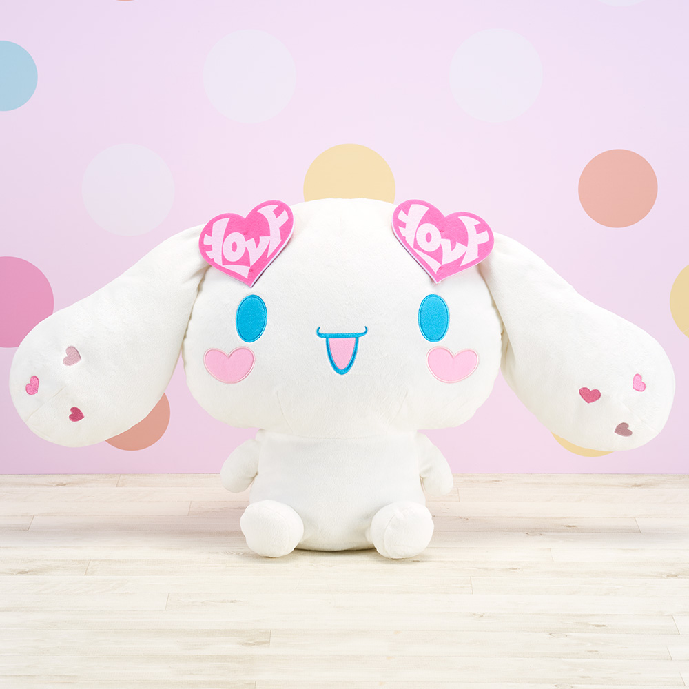 ほっぺやお耳にハートをあしらった「シナモロール」のかわいいぬいぐるみです☆