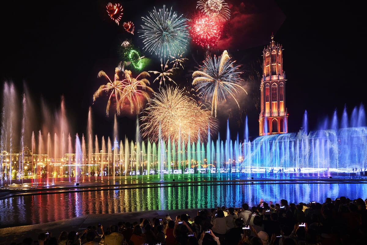 8,000発の花火やイルミネーション、音楽噴水ショーとの共演!ハウステンボス「光の街のカウントダウン2024-2025」