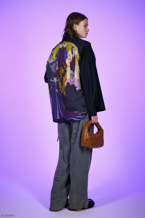 キャラクターを背中にプリントしたオーバーサイズシャツは、個性あふれるディズニーヴィランズがずらりと並ぶ大胆なデザインです。