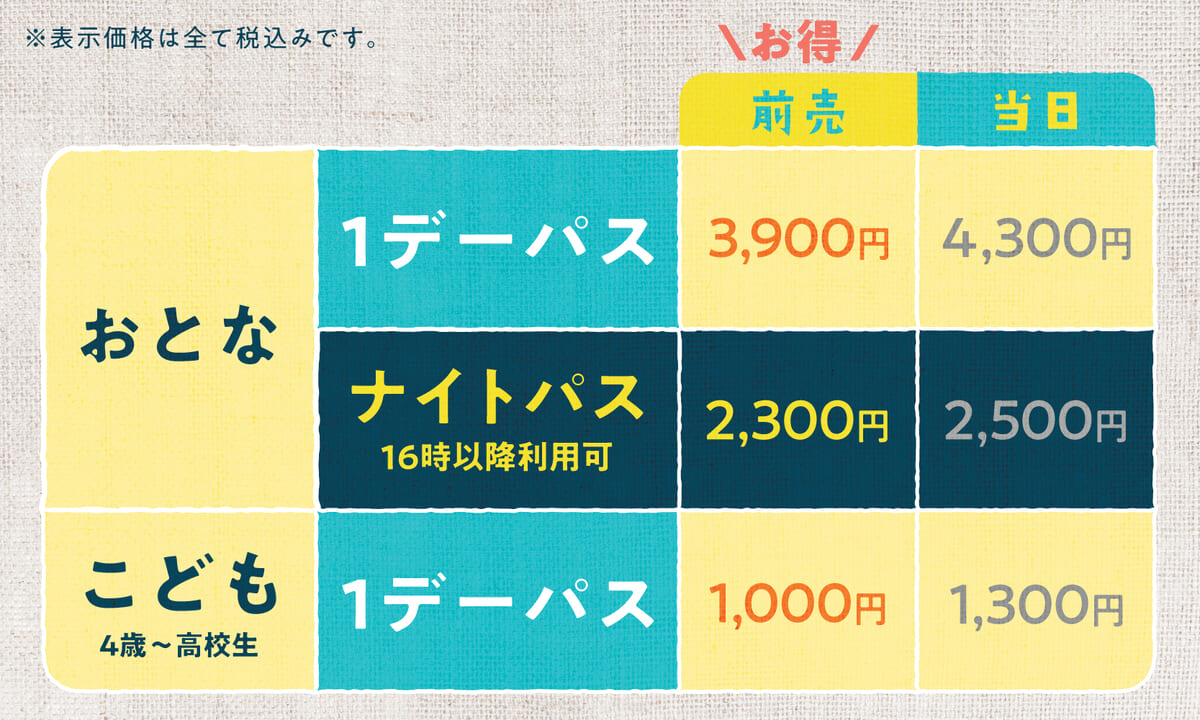 2024年11月1日より、充実した体験とサービス向上のため1デーパスの料金を改定。
