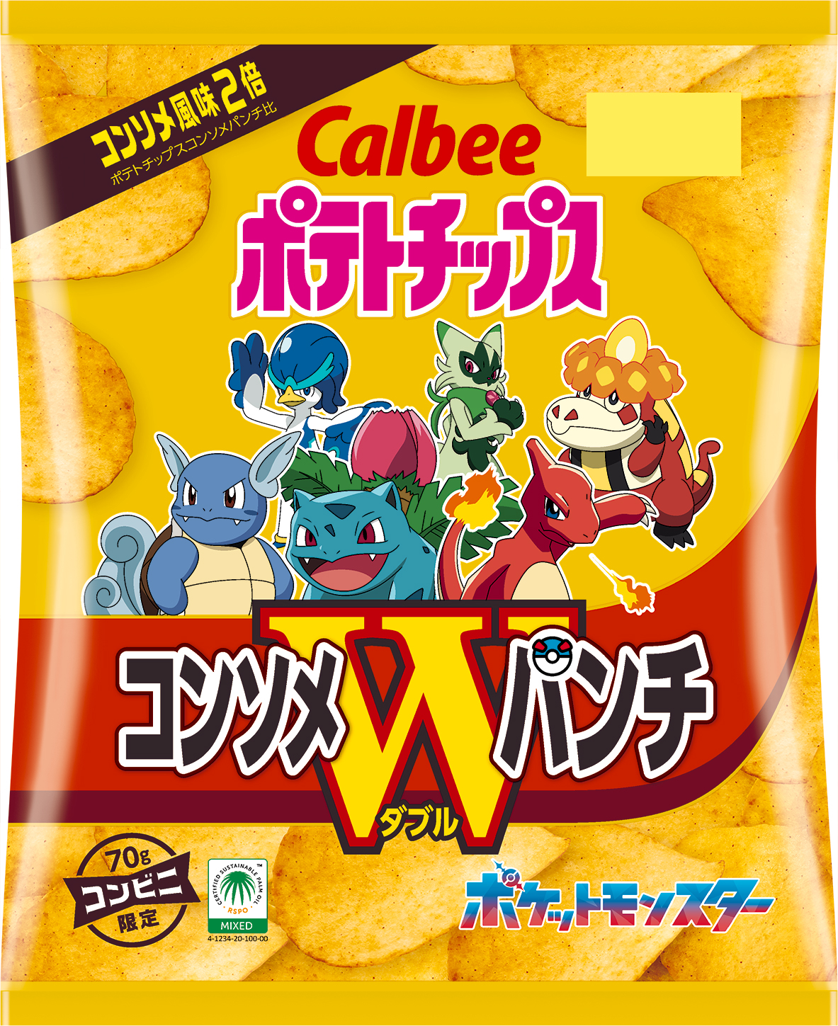 「ポテトチップス コンソメWパンチ」も期間限定のポケモンデザインで発売。