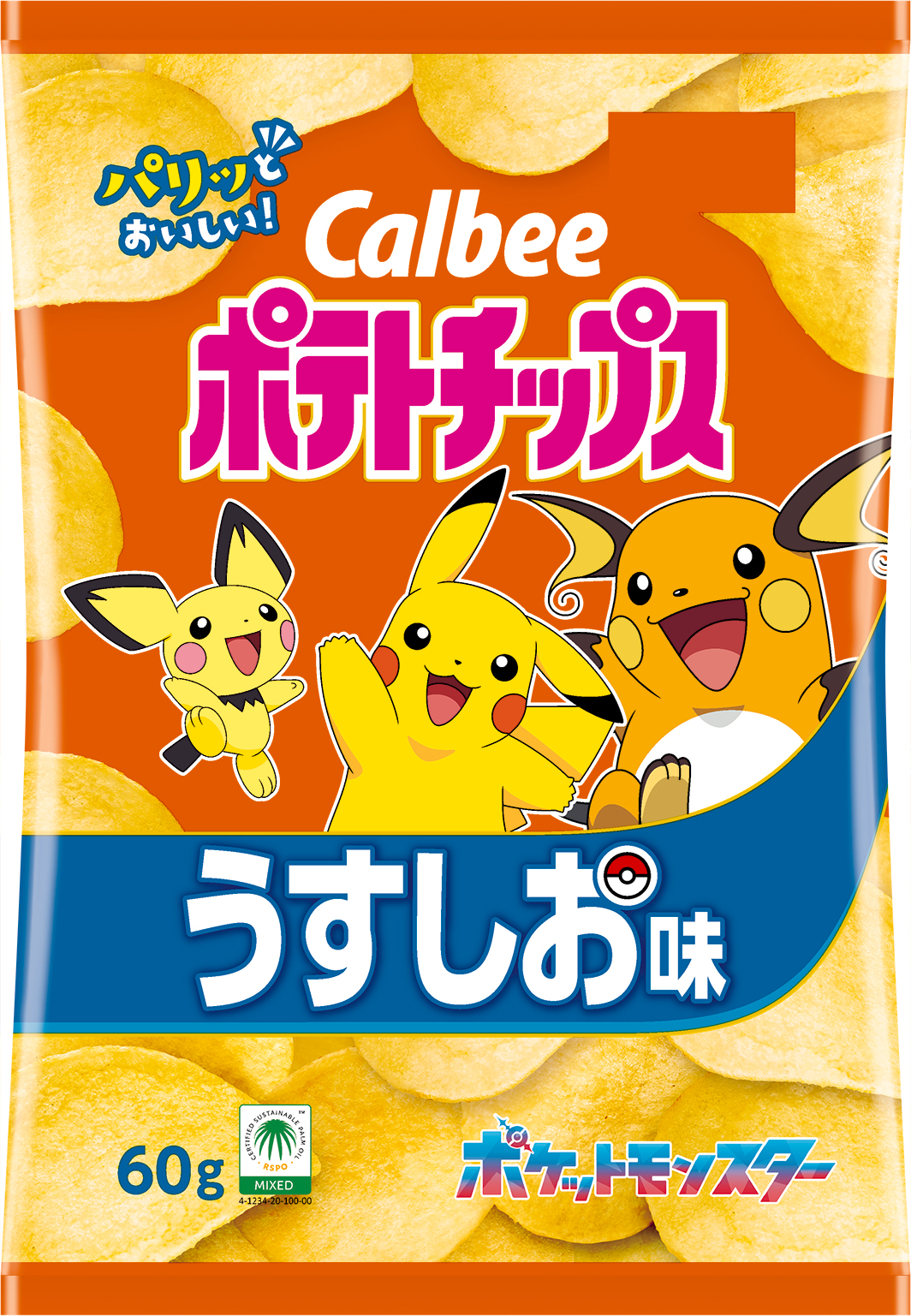 さらに「ポテトチップス うすしお味」もポケモンデザインで登場。
