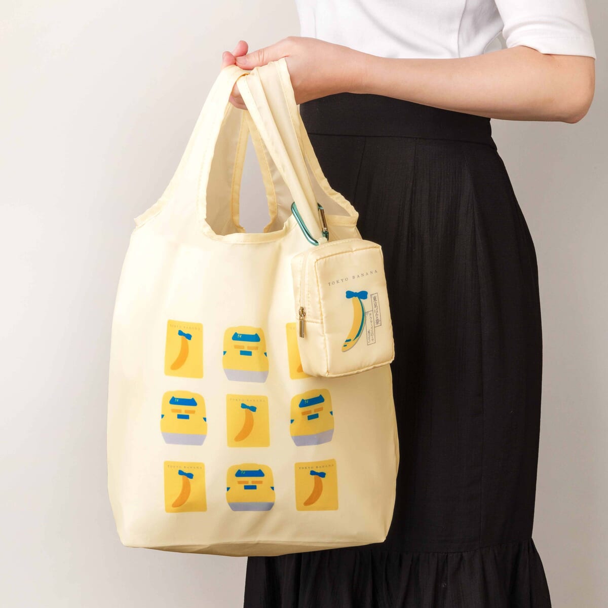 「東京ばな奈」のパッケージをイメージしたミニポーチには、エコバッグも収納することができます。