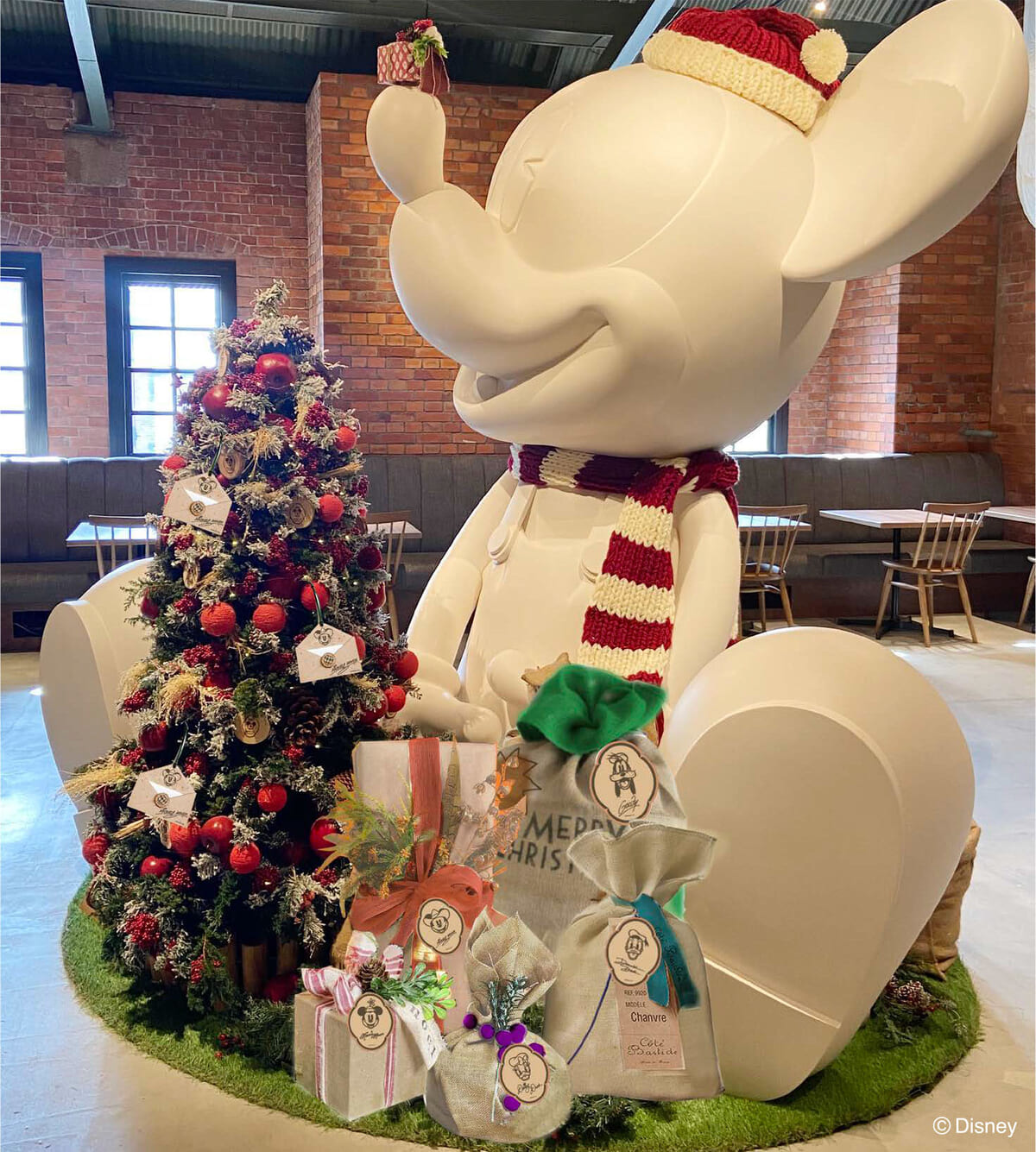 店内では高さ約2.7メートルの巨大な「ミッキーマウス」をイメージしたスタチューがクリスマス仕様に!