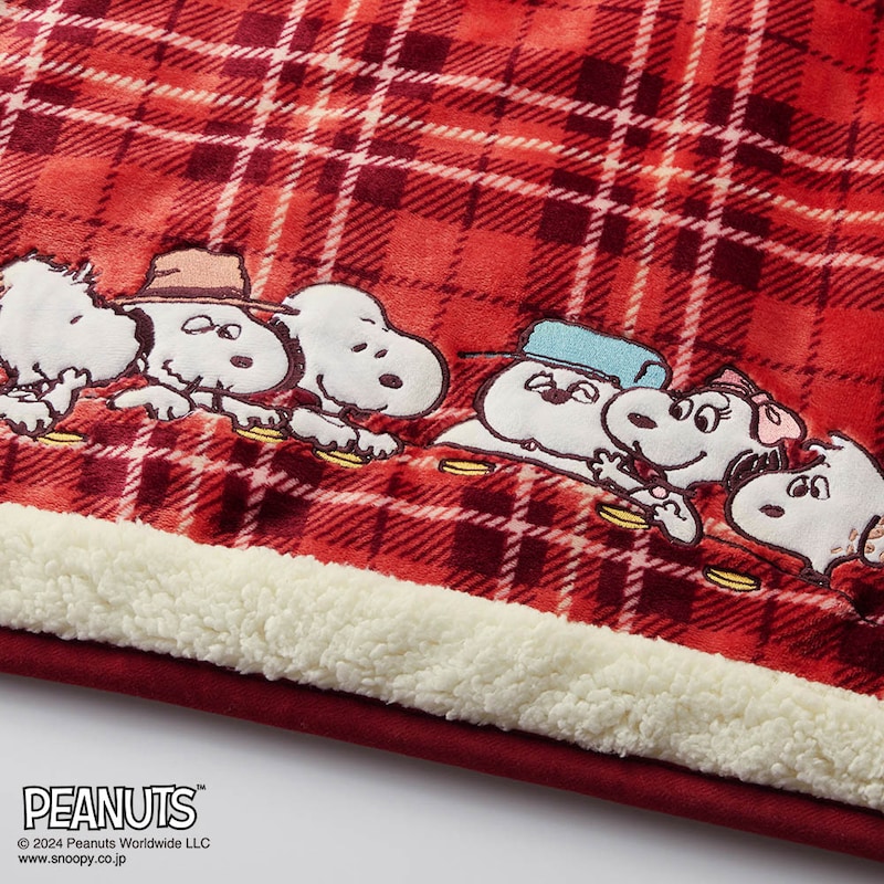 「スヌーピー」たちのかわいいアップリケ刺繍入りの省スペースこたつ布団。