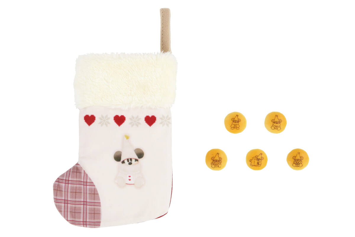 クリスマスの妖精“リルリンリン”がデザインされた靴下の形をした袋に入ったクリームフィルド・ビスケット。