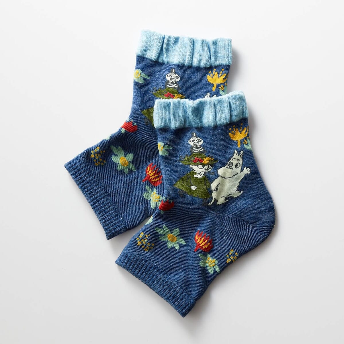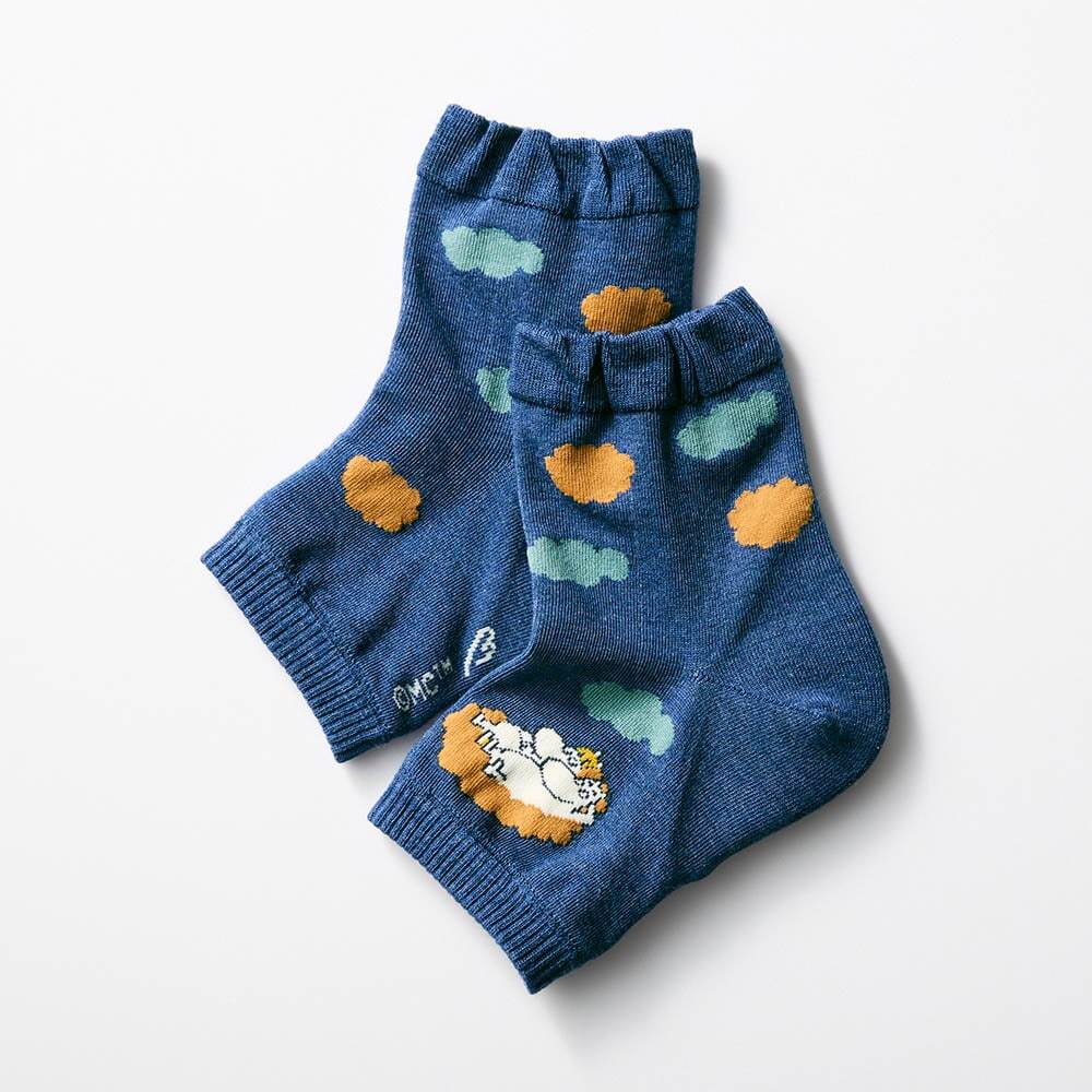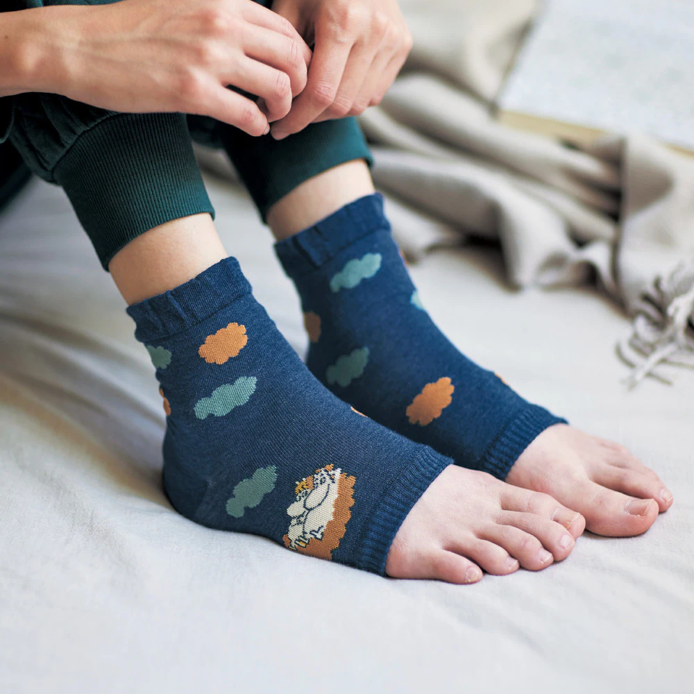 お風呂上がりに履くだけで、カカトの乾燥をケアできる「ムーミン」デザインのサポーター。