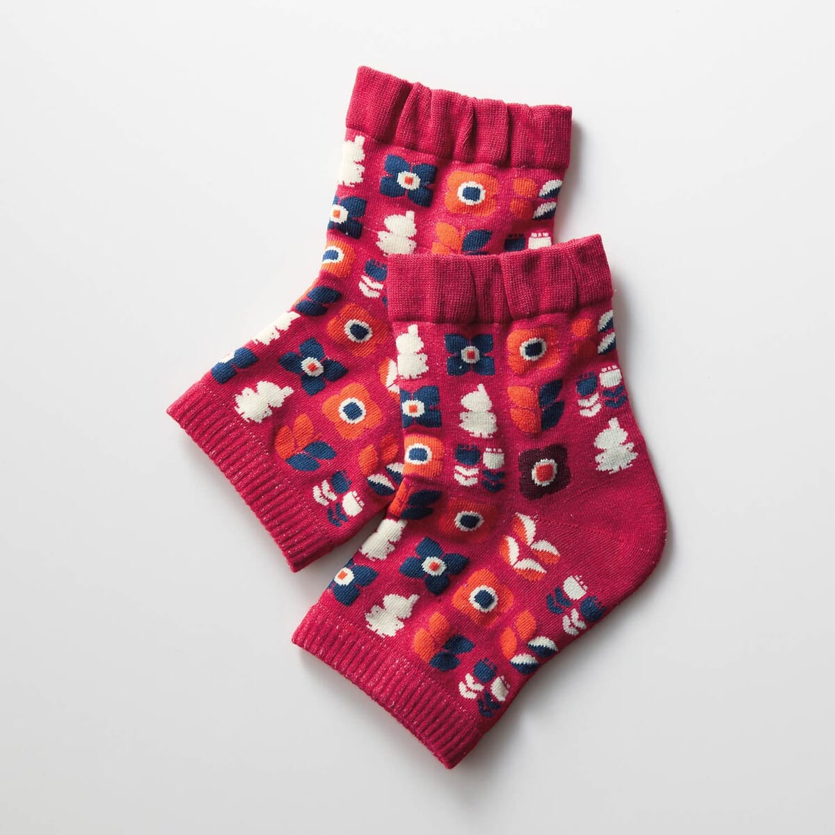 目を引く明るいカラーで、かかとをケアしながらお家の中でおしゃれを楽しめるサポーターです。