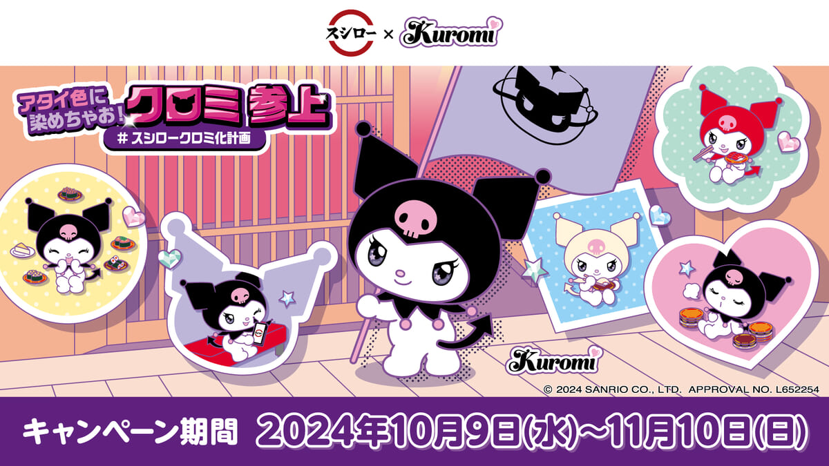 ほかにも、東京・新宿と大阪・天王寺のサンリオショップの一部コーナーが期間限定で”クロミ化“し、「#世界クロミ化WEEK2024」特別装飾になったり、10月9日からは全国の回転すし「スシロー」とのコラボ「#スシロークロミ化計画」がスタート。