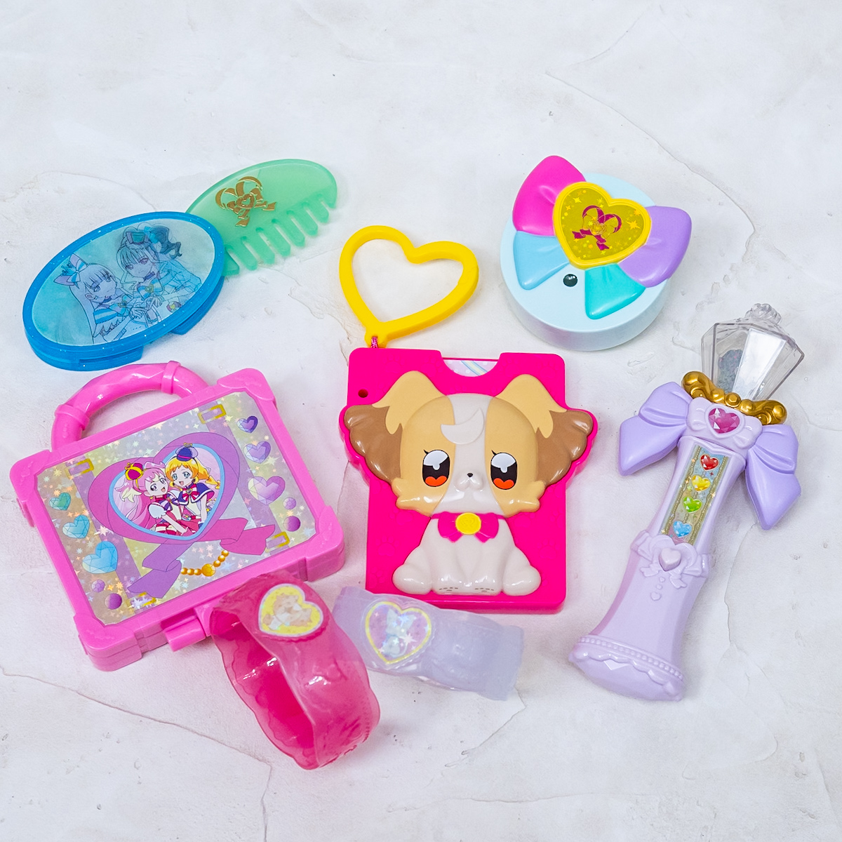 種類:全6種(まわる!キラキラ フレンドリータクト、こむぎ&ユキ ペアブレスレット、のぞいてみて! ワンダフルパクトキャリービューワー、プリキュアにへんしん! クリアコーム、キラニコトランク おしゃれミラー、こむぎとおでかけ! パスケース)