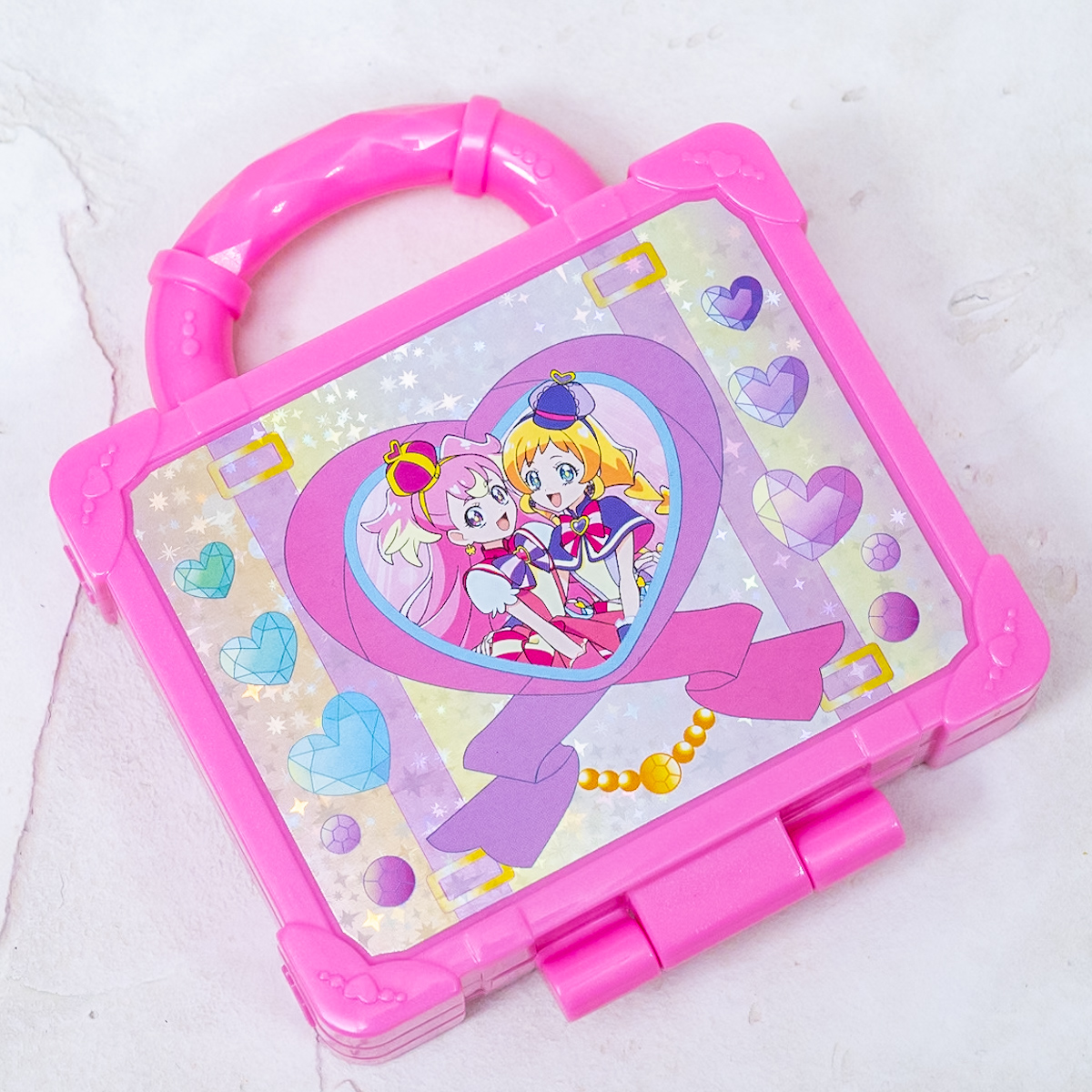「プリキュア」のアイテム「カラフルエボリューション♥変身ワンダフルパクトキャリー」をモチーフにしたおもちゃ。