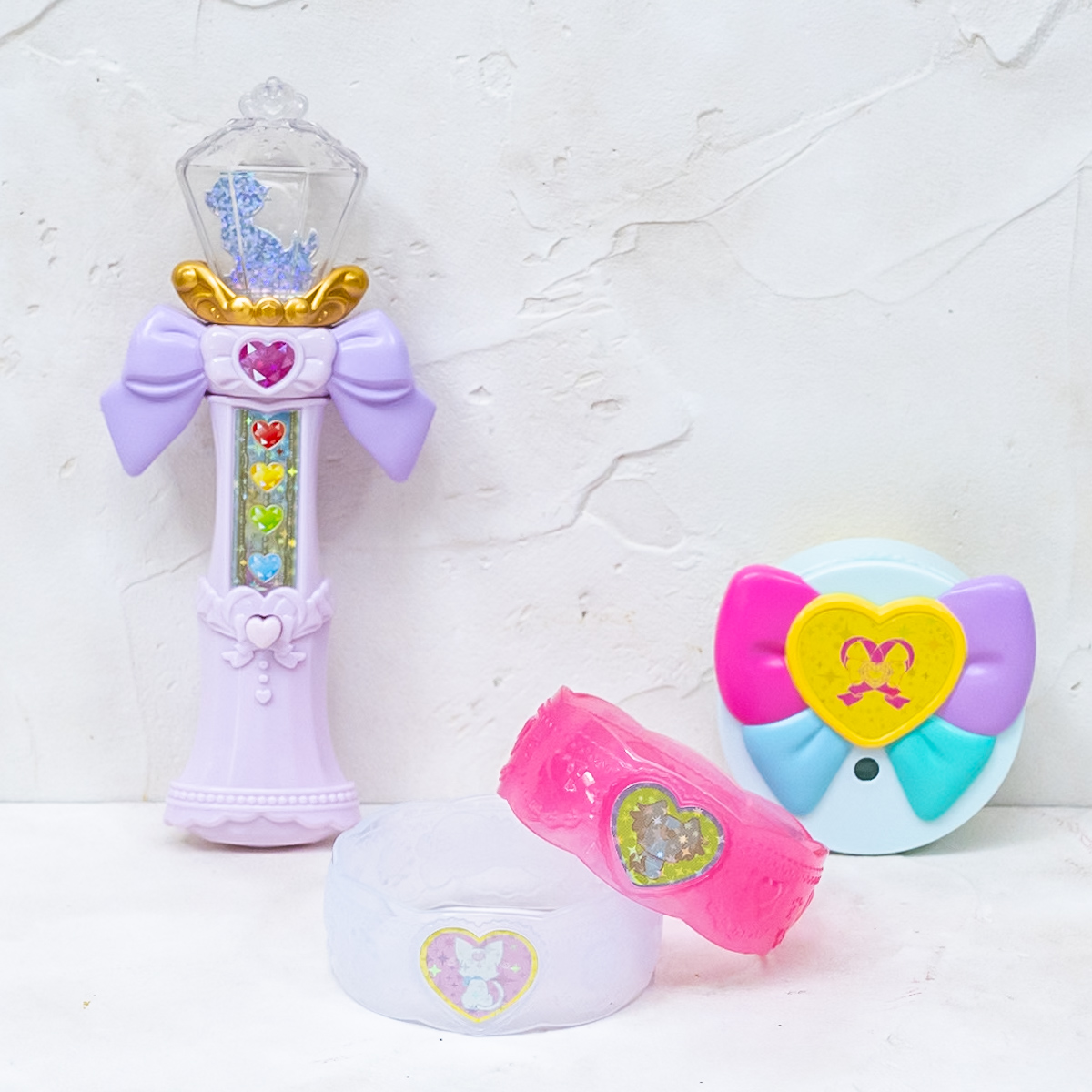 第1弾では「まわる!キラキラ フレンドリータクト」「こむぎ&ユキ ペアブレスレット」「のぞいてみて! ワンダフルパクトキャリービューワー」の3種類が登場。