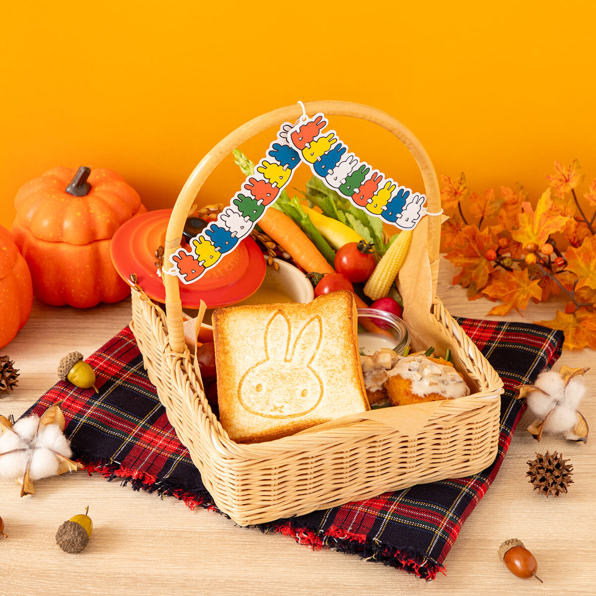 秋をイメージした食材をバスケットに詰め込んだ「ミッフィーと秋のハーベストバスケット」