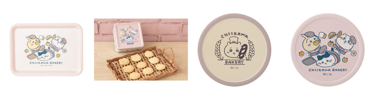 「ちいかわ」たちを描いたトレーや缶入りクッキー。