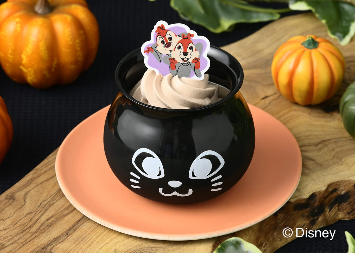 黒猫がモチーフの器に入った、ハロウィンにぴったりなスイーツです。