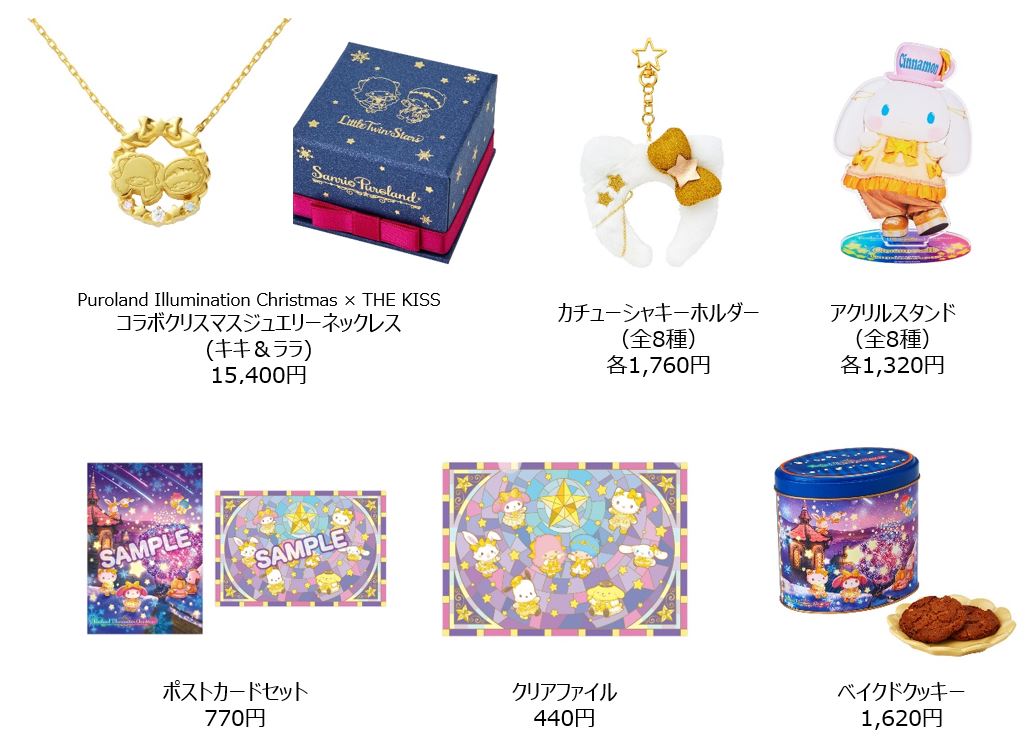 ・Puroland Illumination Christmas アクリルスタンド(ハローキティ/マイメロディ/シナモロール/ポムポムプリン/ポチャッコ/キキ&ララ/ウィッシュミーメル) 各1,320円(税込)