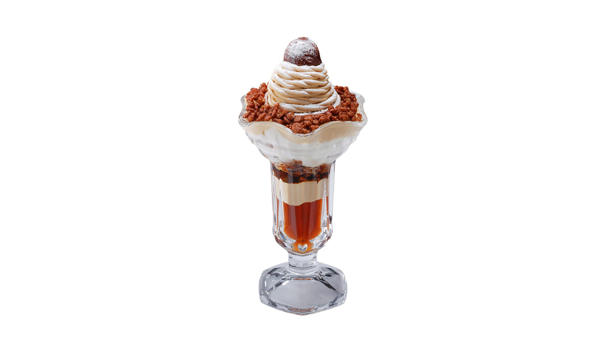栗が香る芳醇な特製モンブランケーキが贅沢に添えられた「モンブランパフェ」