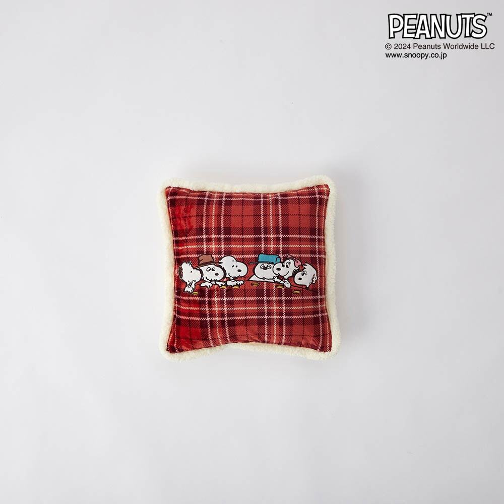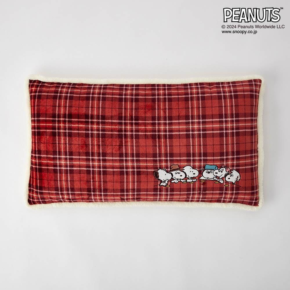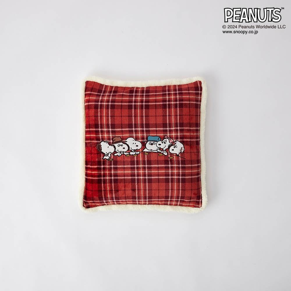 「スヌーピー」たちのアップリケ刺繍がアクセントになった、あったかチェック柄のカバー。