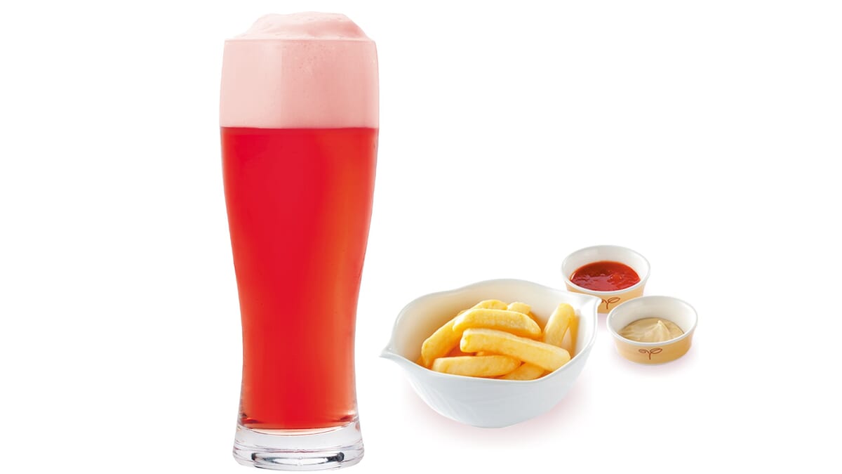 フルーツビールの本場ベルギーに伝わる、伝統的な製法でびっくりドンキーが自社醸造した「フランボワーズレッド」