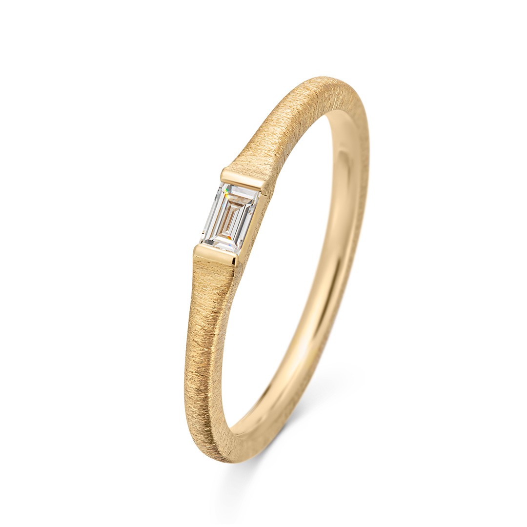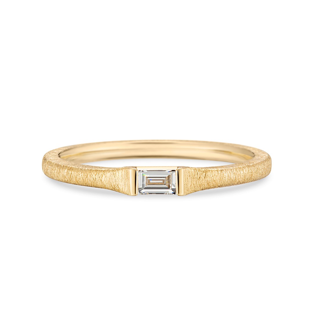 “自分の気持ちにまっすぐに”をコンセプトにした、センターにバゲットカットのダイヤモンドが輝くリング。
