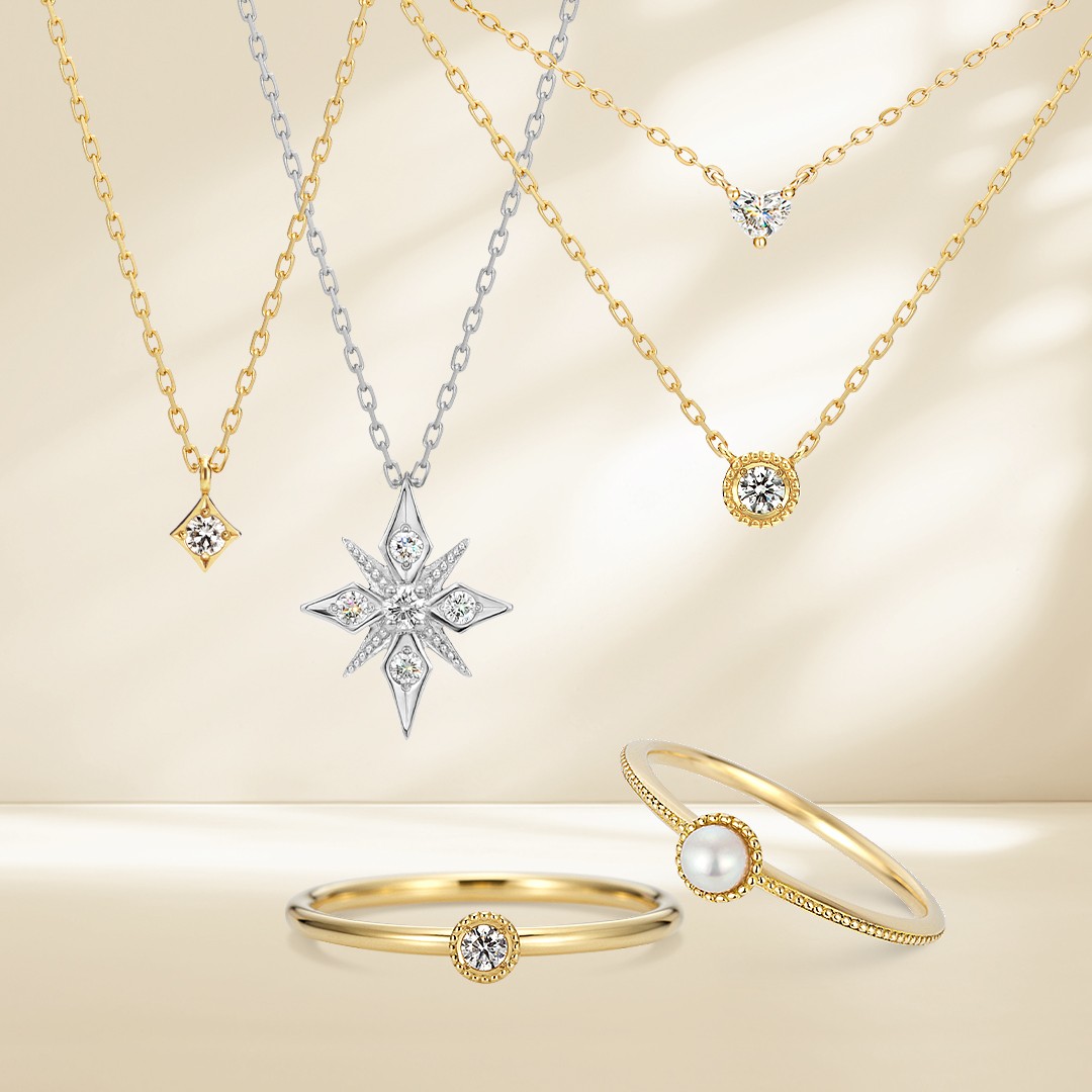 全国にジュエリー店舗を展開するオーダーメイドブランド「ケイウノ」から、ファンシーカットダイヤモンドの個性がさりげなく輝くデザインのアクセサリーが登場。