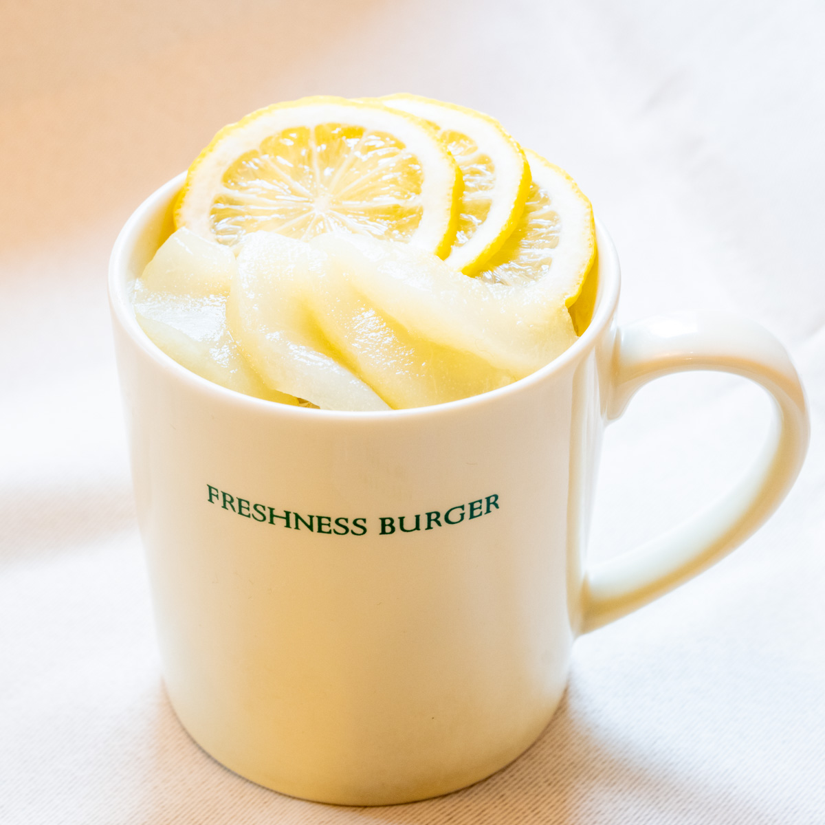レモンスライスとラ・フランス、バランスよく配合されたオリジナルシロップがマッチした「クラフト ラ・フランスレモネード(HOT)」