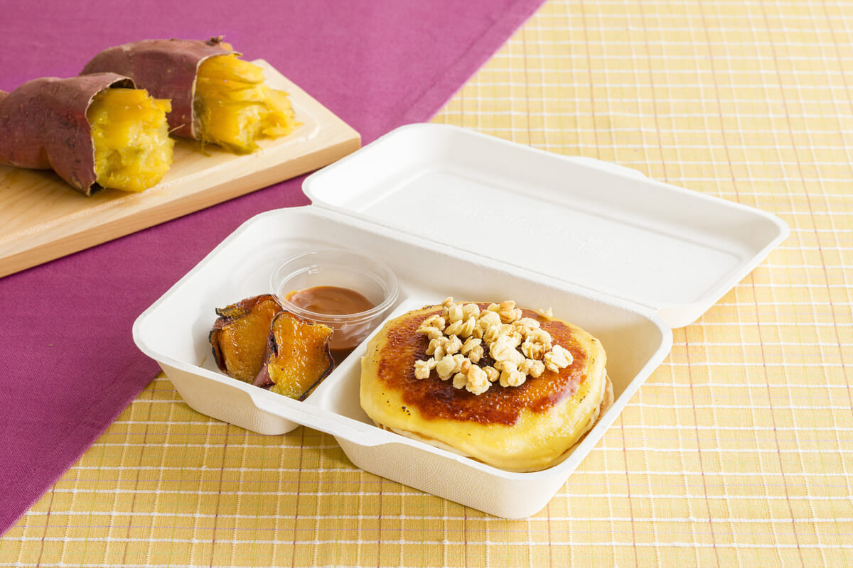 テイクアウトでも、濃厚な焼芋ブリュレパンケーキが楽しめます。