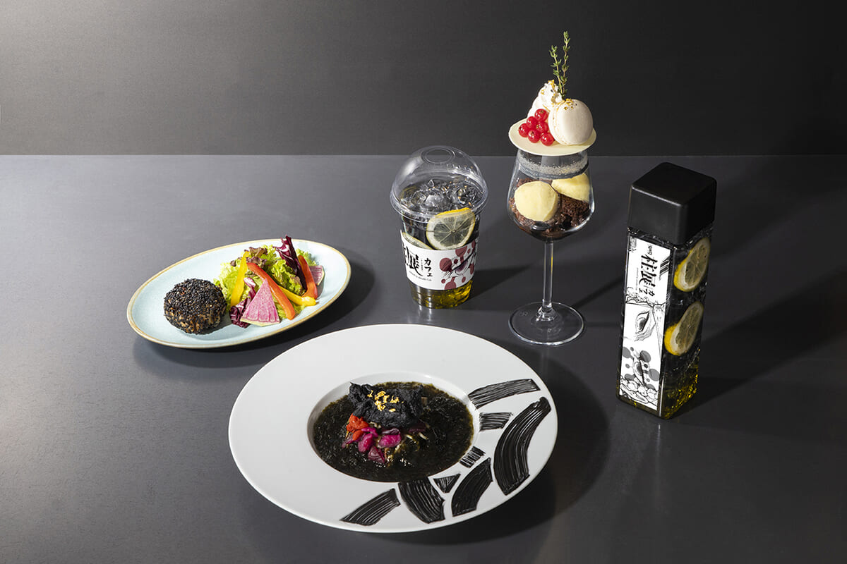 好物である”ふぐ刺し”から、ふぐのフリットをのせた和出汁パスタのほか、黒豆と黒ゴマを使ったおむすびも販売されます。