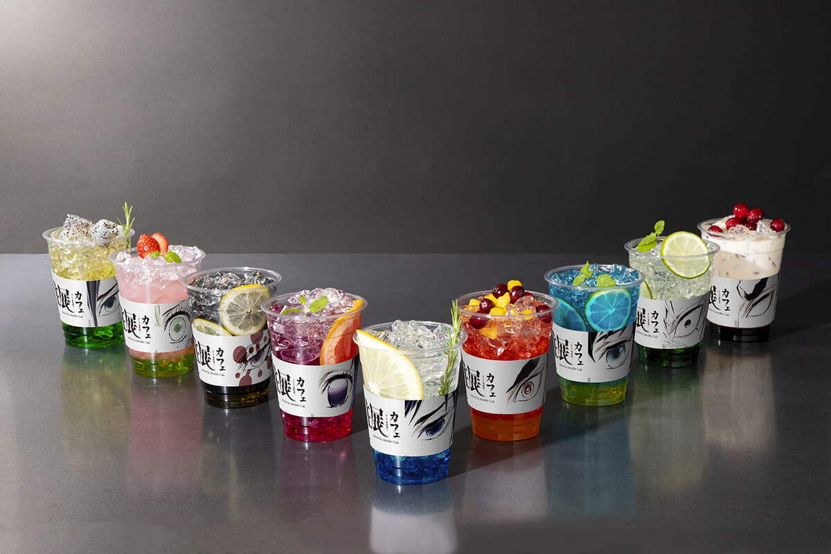 カフェでは、鬼殺隊最高位の剣士、水柱「冨岡義勇」、蟲柱「胡蝶しのぶ」、炎柱「煉獄杏寿郎」、音柱「宇髄天元」、霞柱「時透無一郎」、恋柱「甘露寺蜜璃」、風柱「不死川実弥」、蛇柱「伊黒小芭内」、岩柱「悲鳴嶼行冥」をイメージしたメニューが展開されます。