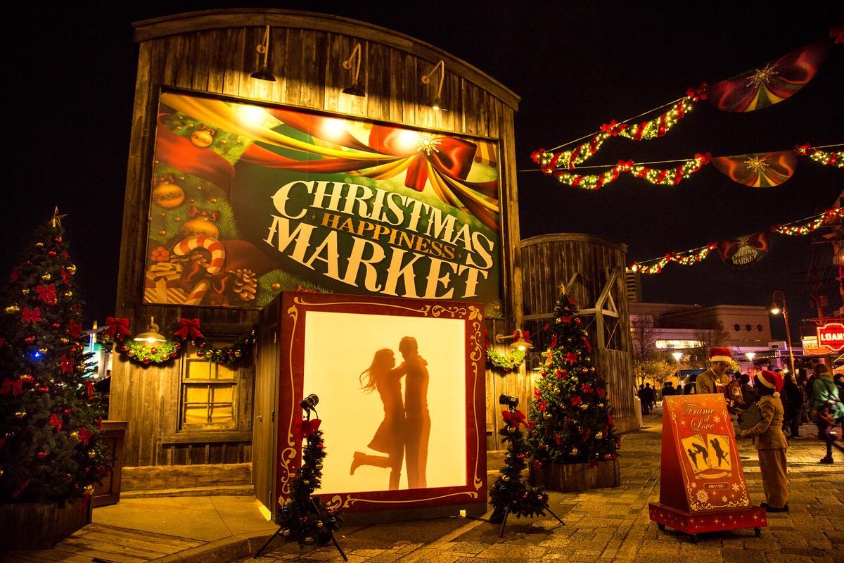 綺麗に輝くイルミネーション装飾の下でパークならではの限定フードを食べ歩きしたり、ゲームコーナーも楽しめます。