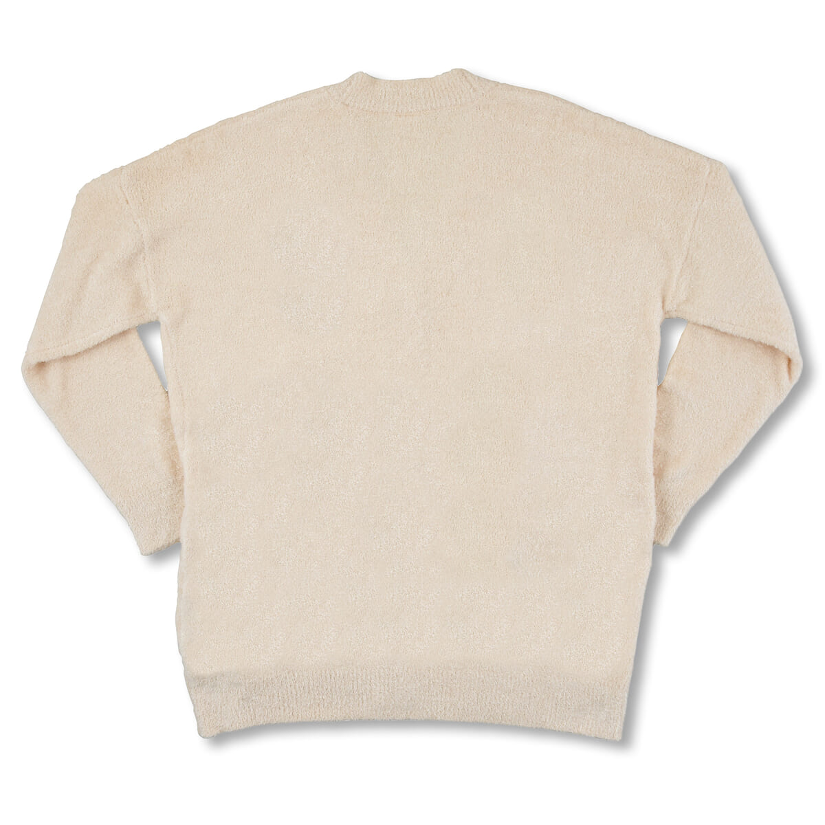 ニュアンスホワイトの生地が優しい雰囲気を演出してくれる、ほわほわ素材のカーディガンです。
