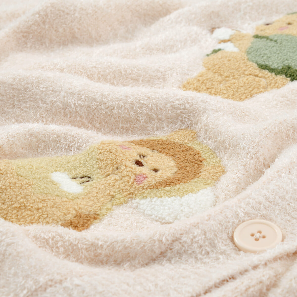かわいい帽子とケープをまとった、ほっこり感たっぷりの「くまのプーさん」をデザインした、お家時間にぴったりの長袖カーディガン。