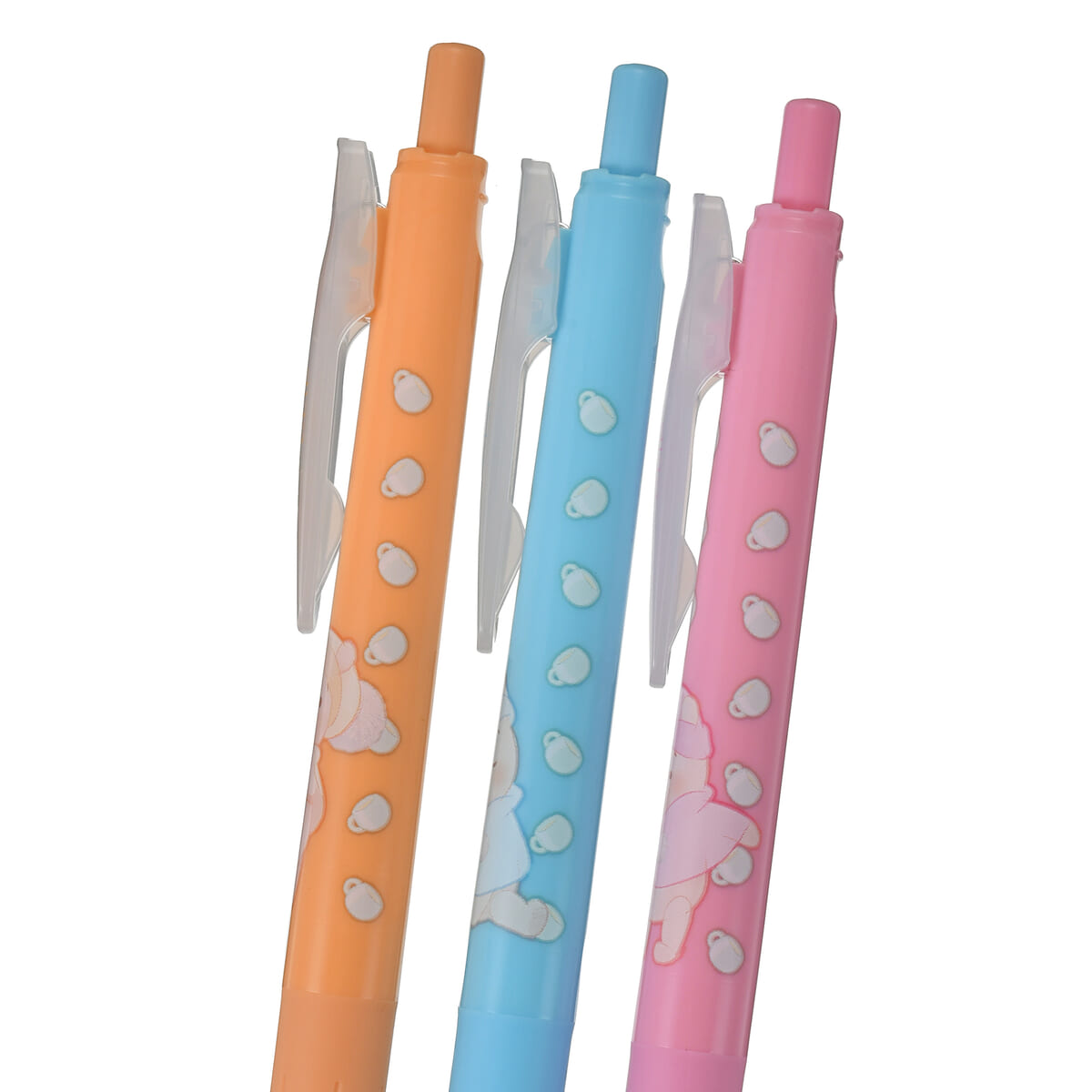 ペン軸とキャラクターイラストを同系色でまとめた、デザイン違い3本が揃います。