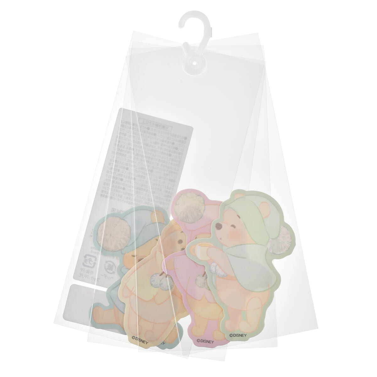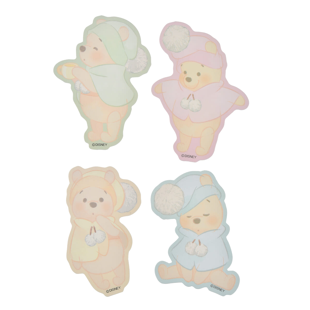 「くまのプーさん」が身に着けている小物に付いたポンポン飾りと、淡く優しいカラーリングが、キャラクターのかわいらしさを引き立てます。