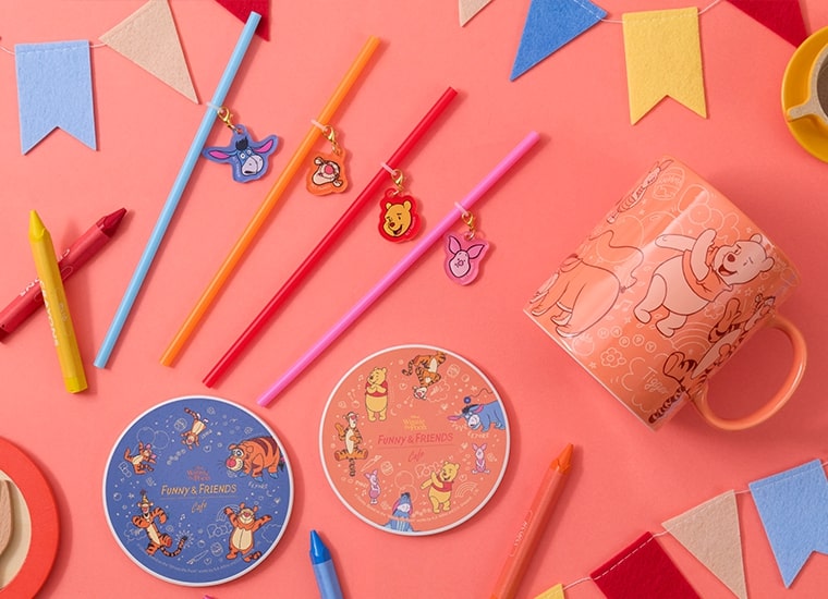 “FUNNY & FRIENDS”をテーマにした、「くまのプーさん」と仲間たちのファニーなフェイスがインパクト大の楽しい世界観が体験できるスペシャルなカフェです☆
